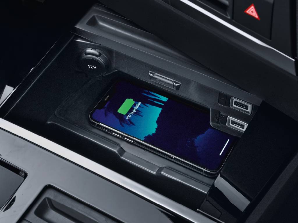 Saglabājiet salonu brīvu no vadiem un uzlādējiet saderīgas ierīces, izmantojot integrēto bezvadu lādētāju. Savukārt iebūvētais kustību sensors novērš ierīces akumulatora pārslodzi, ja uzlādes laikā braucat ar automobili pa nelīdzenu ceļu.