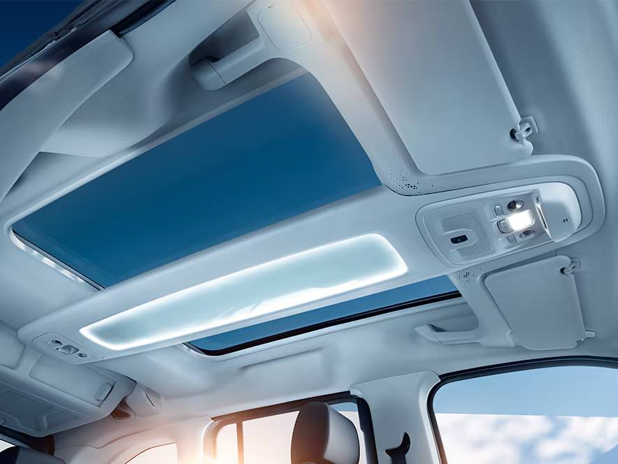 Atveriet elektriski vadāmās žalūzijas un verieties debesīs caur Opel Combo panorāmas stikla jumtu! Jumtā izvietotie papildu uzglabāšanas nodalījumi sniedz iespēju aizmugurējiem pasažieriem novietot tur savas mantas. Savukārt jumta plauktos iebūvētās LED gaismas radīs relaksējošu atmosfēru salonā, lai padarītu garos braucienus patīkamus visiem pasažieriem.