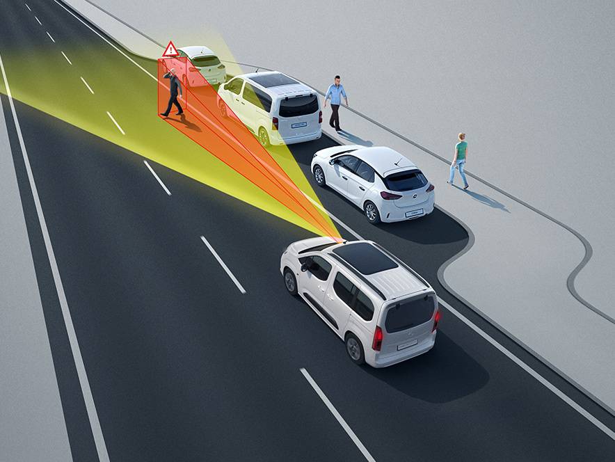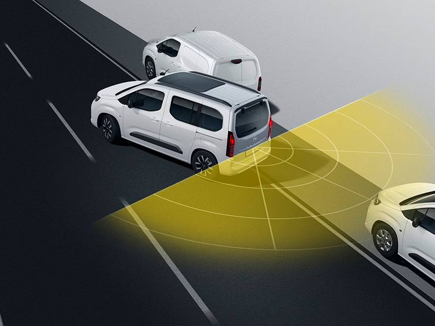 Opel sānu aizsardzības sistēma ar tās 12 sensoriem brīdinās Jūs par šķēršļiem, ko iespējams nepamanīsiet, veicot manevrus vai braucot pagriezienos mazā ātrumā. Sistēma sniegs vizuāli un akustiskus brīdinājumus, izmantojot Combo informācijas un izklaides sistēmas skārienekrānu.