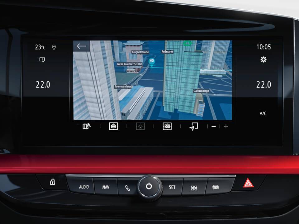 Opel modernā navigācijas sistēma ar skārienekrānu aizvedīs Jūs līdz galamērķim pa pašu labāko maršrutu, kas papildināta ar reāllaika satiksmes informāciju. Izvēlieties Multimedia Navi Pro ar 10” displeju, Live Navigation Services vai Multimedia Navi ar 7” displeju